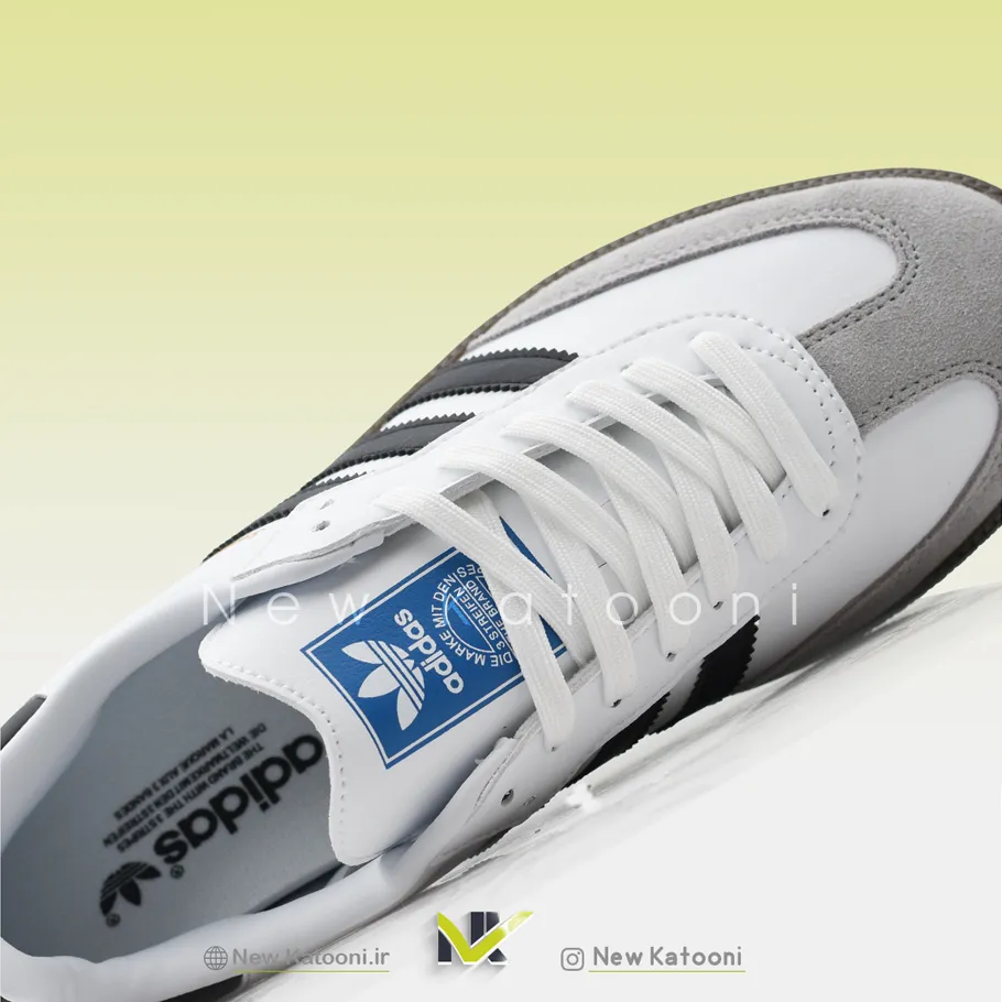رویه آدیداسسامبا از چرم با کیفیت ساخته شده که دوام و راحتی را همزمان فراهم میکند. این چرم نرم و مقاوم به همراه خطوط ساده و طراحی مینیمالیستی، ظاهری خاص و زیبا به کفش بخشیده است. طراحی کلاسیک سامبا با رنگهای سفید و مشکی همراه با جزئیات طلایی آدیداس، این مدل را به یک کفش برجسته و متفاوت تبدیل کرده است. قسمت جلویی کفش نیز به شکل خاصی طراحی شده تا راحتی و فضای کافی برای انگشتان پا فراهم کند. پارچه نبوک به کار رفته در قسمت جلویی کفش نیز مقاومت آن در برابر سایش و آسیبهای روزمره را افزایش میدهد.