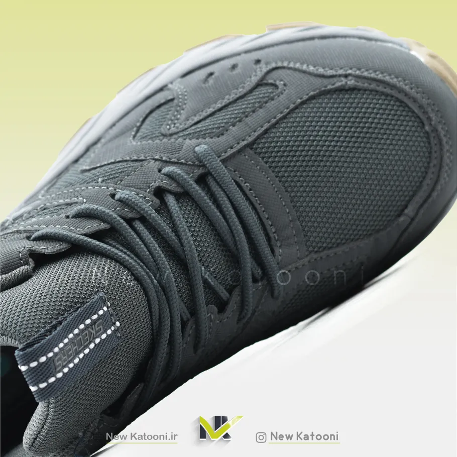 اولین چیزی که در این کفش جلب توجه میکند، رویه آن است. رویه Skechers Max Protekt Grey با دقت خاصی طراحی شده تا نهایت دوام و محافظت را در برابر عوامل محیطی فراهم کند، بدون اینکه راحتی یا تهویه را فدا کند. رویهٔ این کفش، از پارچهی مش (mesh) تنفسی در کنار مواد مصنوعی تقویتشده ساخته شده؛ ترکیبی هوشمندانه که هم دوام بالایی دارد و هم به تهویهی پا در طول روز کمک میکند. بافت پارچهای بهخوبی روی پا مینشیند، بدون اینکه آن را در فشار یا گرما قرار دهد. نتیجه؟ پاهای شما حتی در طول فعالیتهای طولانی، خنک و خشک میمانند. رنگ خاکستری (Grey) نیز انتخابی هوشمندانه است؛ این رنگ نه تنها ظاهری شیک و همهپسند به کفش میبخشد، بلکه در برابر کثیفی و لکهها نیز مقاومت بیشتری دارد و به راحتی با استایلهای مختلف شما ست میشود. جزئیات طراحی روی رویه – از دوختها گرفته تا خطوط محافظ – حس حرفهای بودن را القا میکند؛ گویی کفش آماده است تا شما را از مسیرهای خشن تا خیابانهای آرام همراهی کند.