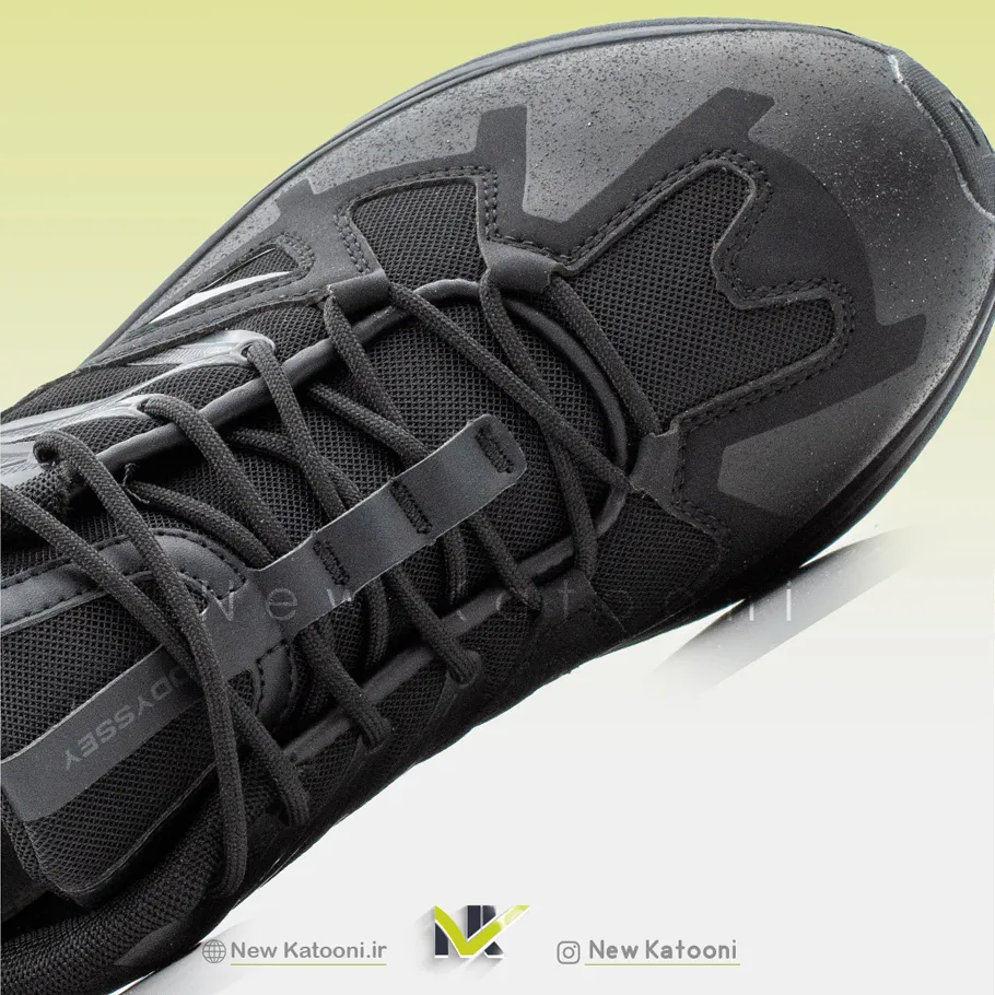 برای بالا بردن میزان مقاومت کتونی، سالامون از دو متریال سنتیک (Synthic) و چرم مصنوعی استفاده کرده است. حضور سنتیک را می توانید در قسمت درگاه بندها ببینید. از آنجایی که سنتیک از خانواده پلاستیک هاست به خوبی می تواند در برابر کشیدگی مقاومت کند؛ پس بندها را تا جایی که دوست دارید محکم ببندید تا رویه کاملا فیت پاهایتان شود.