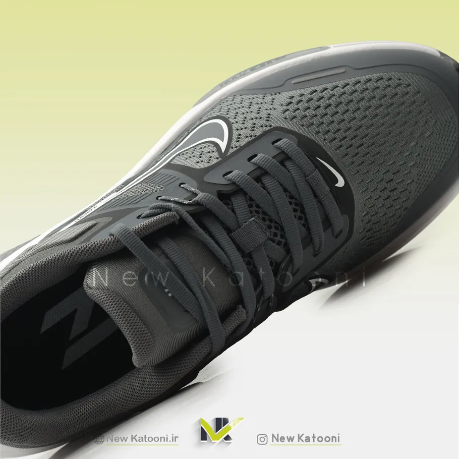 وقتی برای اولین بار نایک ایر زوم وینفلو 1 را به پا میکنید، آن حس آشنای نایک در آغوش گرفتن پا را حس میکنید. رویهی آن از مش مهندسیشده، با ظرافت و دقت بافته شده است تا به خوبی پای شما را بپوشاند و انعطافپذیری لازم را در حرکت ایجاد کند. اما این مش فقط برای زیبایی نیست؛ تار و پود آن به گونهای است که هوا را به جریان میاندازد و در طول دویدنهای طولانی و در شرایط آب و هوایی مختلف، پاهایتان را خنک و خشک نگه میدارد. لایههای خاکستری تیره که در کنارهها و پشت کفش قرار گرفتهاند، با دقت تمام، پای شما را در جای خود محکم نگه میدارند و پشتیبانی لازم را برای حرکات جانبی و جلوگیری از پیچخوردگی فراهم میکنند. این ترکیب هوشمندانه، نه تنها ظاهری مدرن و قدرتمند به کفش میبخشد، بلکه حس راحتی و اطمینان را از همان لحظه اول به شما منتقل میکند. لوگوی Swoosh نایک نیز با رنگی متفاوت، بر روی کنارهها میدرخشد و هویت این برند را به شکلی مینیمال و زیبا به نمایش میگذارد.