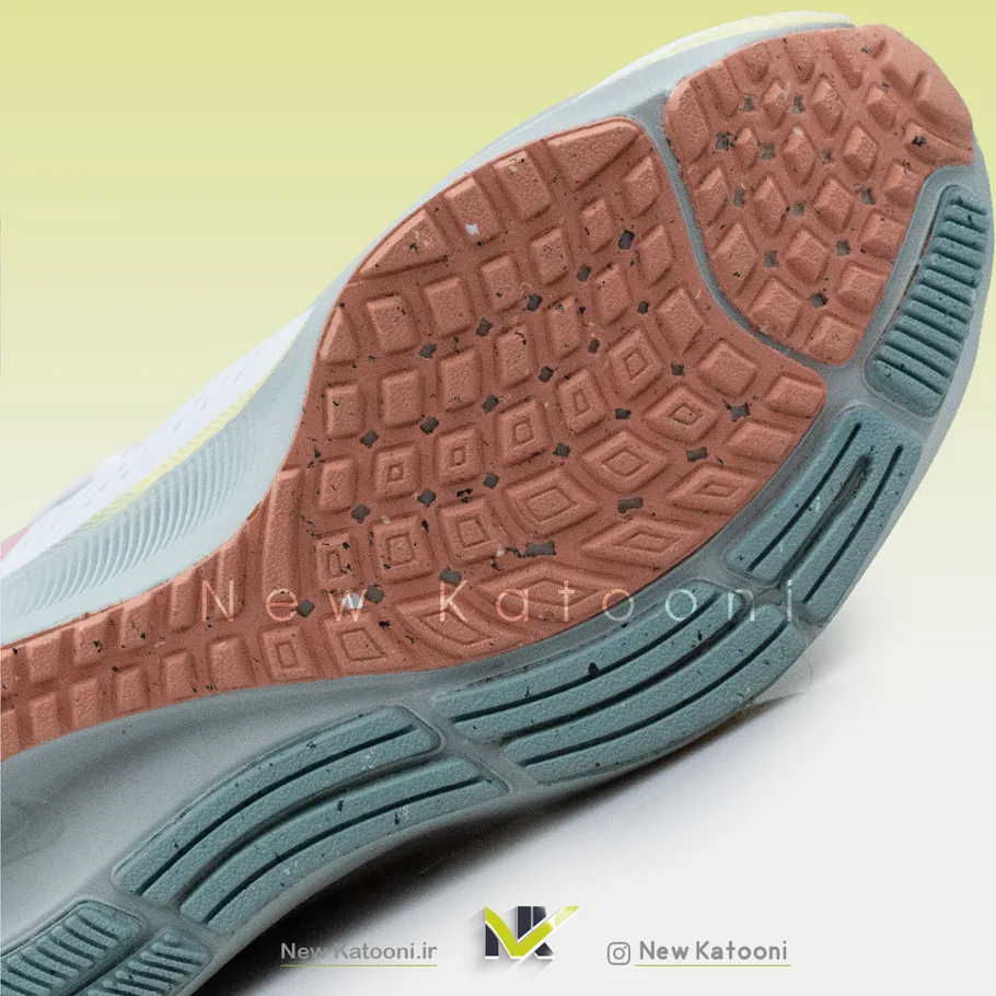 به عنوان یک کتونی رانینگ زنانه که زمان استفاده از آن بالاست، توجه به گردش هوا از اهمیت ویژهای برخوردار است. نایک با استفاده از پارچه مش (Mesh) این امکان را در پگاسوس ۳۸ فراهم کرده است. این پارچهی سبک با حفرههایی که دارد، به راحتی جریان هوا را عبور میدهد و مانع از داغ شدن پای شما در حین فعالیتهای ورزشی میشود. همچنین، این تبادل هوا با کنترل تعریق، از رشد قارچها جلوگیری کرده و به حفظ سلامت پا و جلوگیری از بوی ناخوشایند کمک میکند. پس اگر نمیخواهید بعد از یک روز طولانی، بوی پایتان خانوادهتان را اذیت کند، پگاسوس ۳۸ را امتحان کنید!