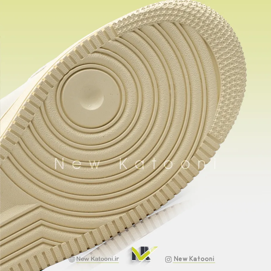 قالب جدیدی که نایک در این ایرفورس کرمی برایتان تدارک دیده، بسیار جذاب و چشم گیر است. اولین موردی که به چشم می آید، استفاده نایک از یک بند طنابی است. این مدل از بندها با توجه به استفاده ی کمی که در صنعت پوشاک دارند، بسیار ساختار شکنانه هستند. چرا که همه ی تولید کنندگان کتونی می خواهند بند کتونی به گونه ای باشد که مخاطب بتواند سریع آن را ببندد و باز هم نشود.