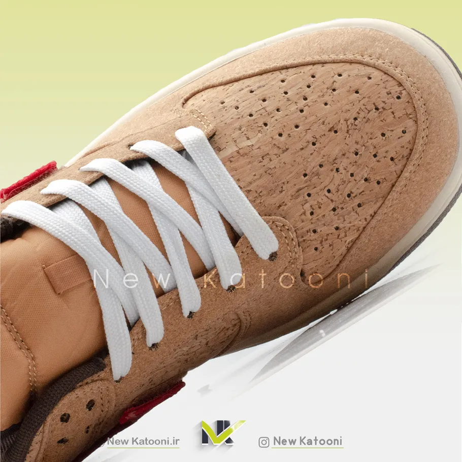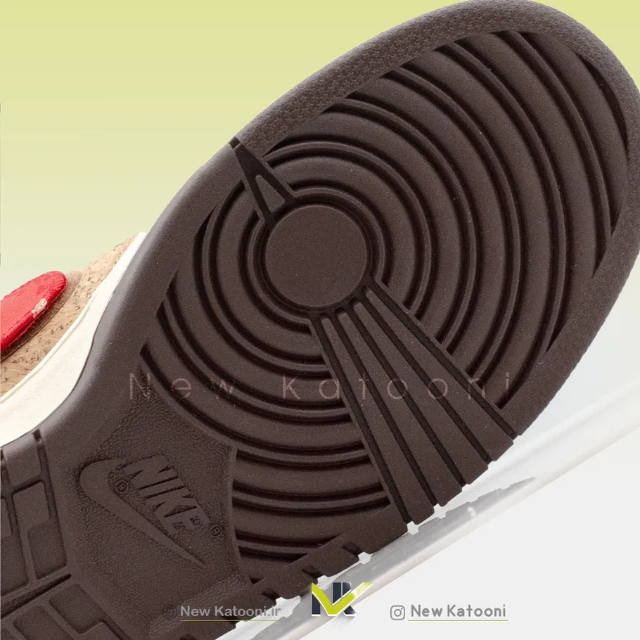 نتیجه این شد که در ساخت رویه نایک دانک لو کلات کورک، از چوب پنبه استفاده شده است! بله درست خواندید، چوب پنبه! شما حتی می توانید بافت چوب پنبه را در قسمت درگاه بندها ببینید.