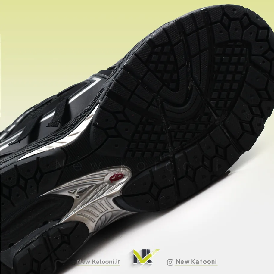 رویه کفش نیوبالانس 1906A بر اساس یک ساختار لایهای و خطوط زاویهدار طراحی شده است. بخش اصلی رویه از جنس مش تنفسپذیر مشکی ساخته شده که به گردش هوای عالی در داخل کفش کمک میکند. این ویژگی، پاهای شما را در طول روز خشک و خنک نگه میدارد و از تعریق بیش از حد جلوگیری میکند. روی این مش، لایههایی از مواد مصنوعی بادوام قرار گرفتهاند که نه تنها به رنگ مشکی اصلی رویه، بلکه با رنگ نقرهای تیره نیز ترکیب شدهاند تا یک ظاهر چشمنواز و لایه لایه خلق کنند. اما زیبایی این رویه تنها به ظاهر آن محدود نمیشود. سیستم بند N-Lock که لوگوی نمادین N را در بر میگیرد، به طور هوشمندانهای به بند کفش متصل است. این سیستم، میانه پای شما را محکم در جای خود قفل میکند تا در هنگام حرکت، حداکثر پایداری را تجربه کنید. علاوه بر این، یک گارد محافظ پاشنه از جنس TPU در قسمت پشت کفش قرار گرفته که ثبات پای عقب را تضمین میکند و از چرخشهای ناگهانی مچ پا جلوگیری مینماید.