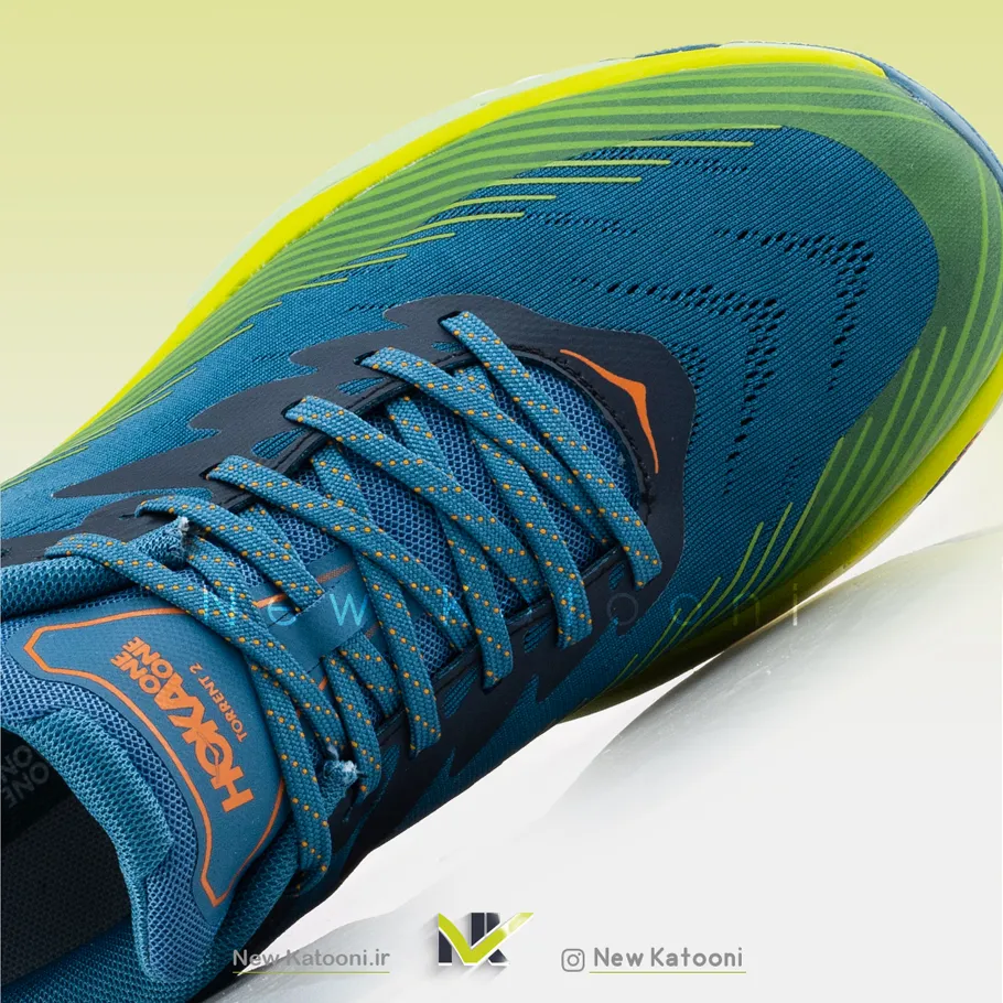 برند هوکا در مدل تورنت 2 به دنبال ساخت کفشی است که سبک و مقاوم باشد. در تمام بخش های این کفش می توان این ویژگی ها را دید. در قسمت رویه، هوکا مثل هر کتانی دویدن دیگری از مش (Mesh) استفاده کرده است.