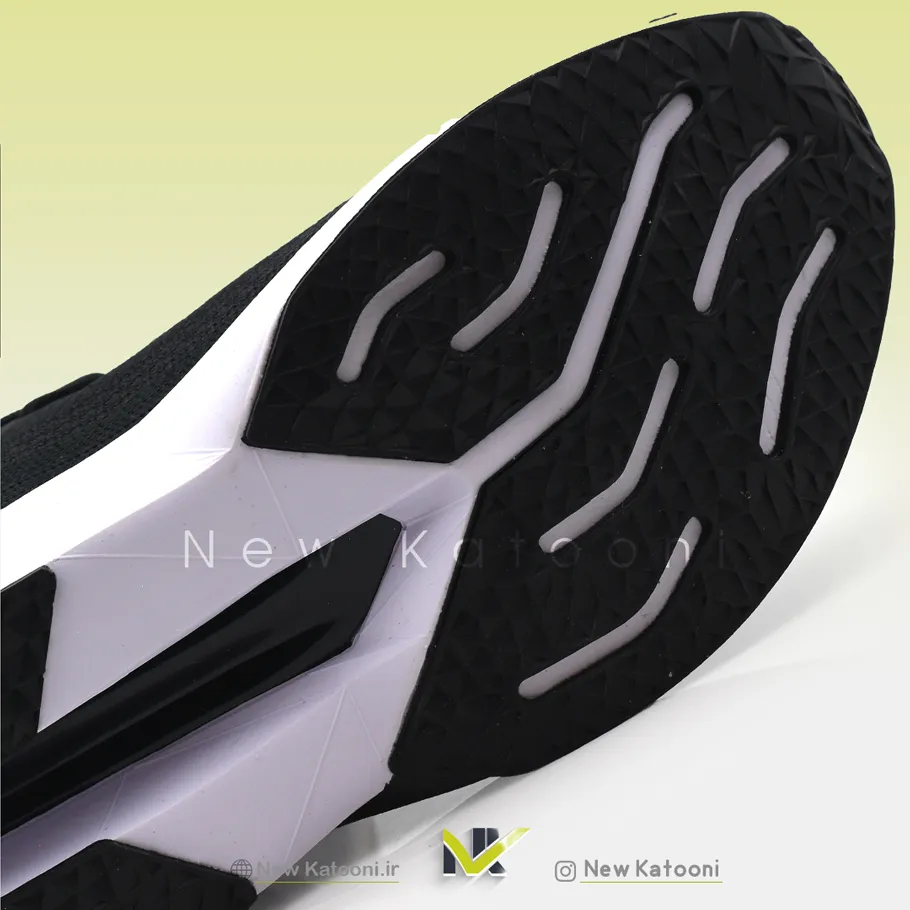 در قسمت زیره میانی، رنگ سفید روشن غالب است، اما جزئیات هندسی و تکه رنگ سیاه روی زیره میانی خود را نشان داده و جذابیت ظاهری کفش را افزایش میدهد. این ترکیب سیاه و سفید، نه تنها ظاهری منحصربهفرد و پویا به کفش میدهد، بلکه به شما اجازه میدهد تا آن را به راحتی با هر لباسی، از شلوارهای ورزشی گرفته تا جینهای تیره، ست کنید.